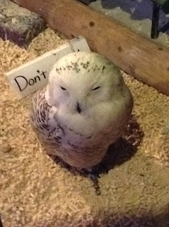 Since Paul finished up early, he met us at Mister Donut. On our walk through Nakamise, we found another owl cafe. Since we had time to kill before dinner, we decided to check it out since they had other animals too. This one had a cover charge and no time limit. The owls were just out on handrails and some were just loose around the cafe. It was amazing how many they had in there. I think it said they had 30 different owls.
